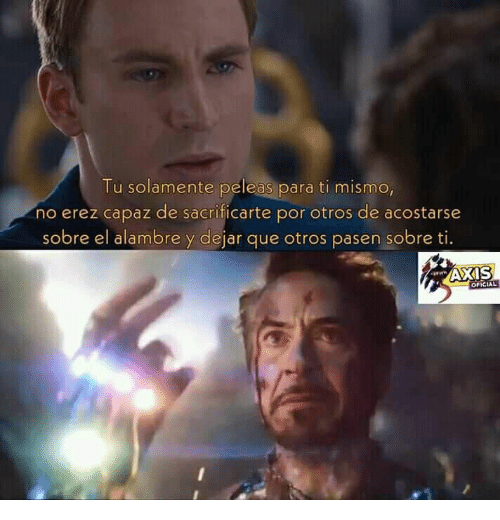 Me impresiona tanto que hay veces que debes dar la vida por los demás como un siervo, y así simplemente muestras el amor mas Grande que puede dar un Humano. La frase se la dice a Iron Man y este por ser egoísta no puede hacerlos de si hasta que dio su vida para que otros se Salvaran.